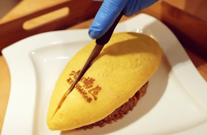 Формування страви: Викладіть рис на тарілку, формуючи «гірку». Перенесіть омлет на рис, акуратно покривши його повністю. Ножем зробіть надріз посередині омлету, щоб він розкрився і з нього витекла ніжна яєчна маса.